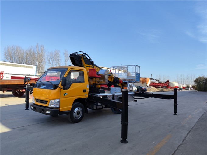 3、车辆操作方便,节省燃油,整车带发动机启动、熄火和远程油门开关:臂架自带照明灯,方便夜间或光线暗作业;